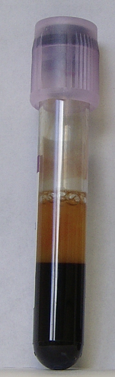 Vid centrifugering av blod samlas röda blodkroppar i…?