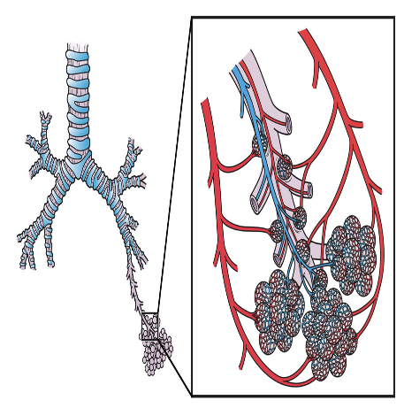 Vilken av följande faktorer gör gasutbytet effektivt i alveolerna?
